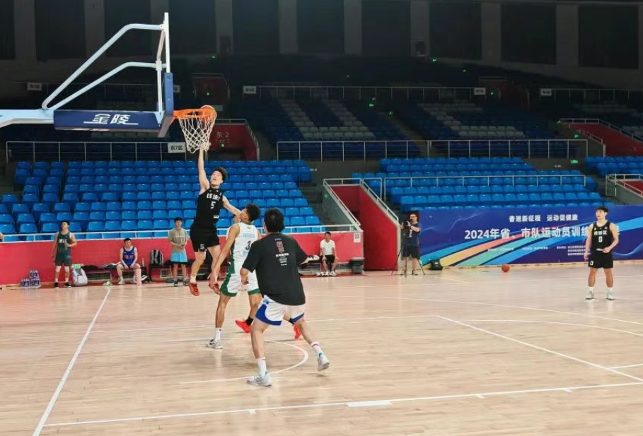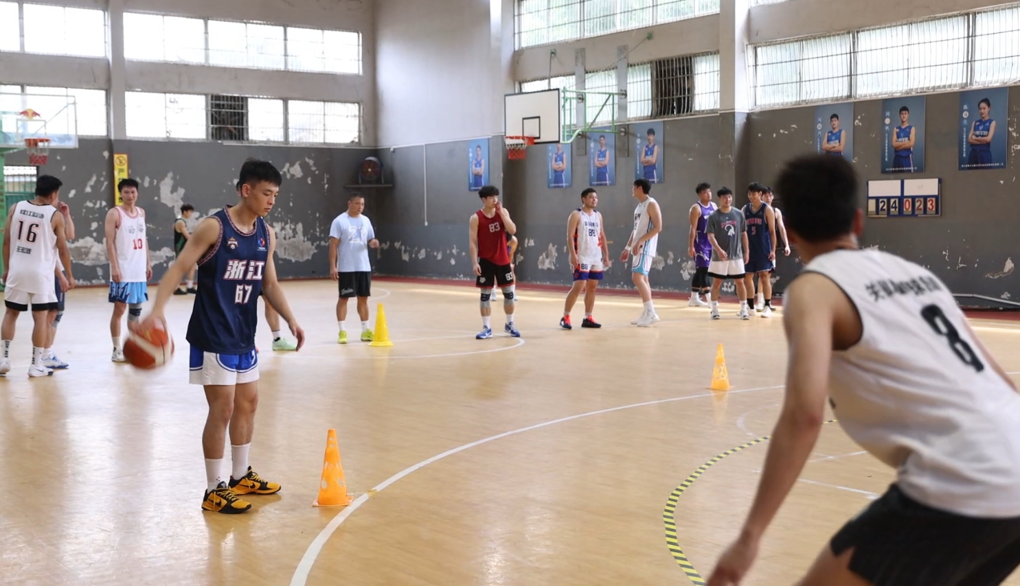 记者还见到了嵊州队队长高锦明,他凭借稳定的运球和后场快速推进能力被教练选中。
